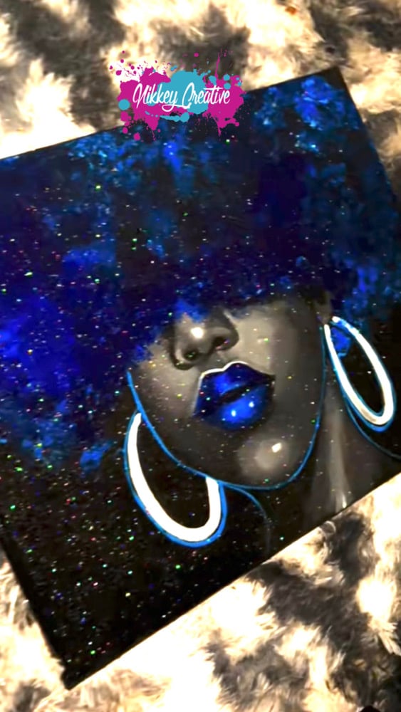 “Queen Blue” 20x16 Original Glitter Painting. This beauty is made to order.